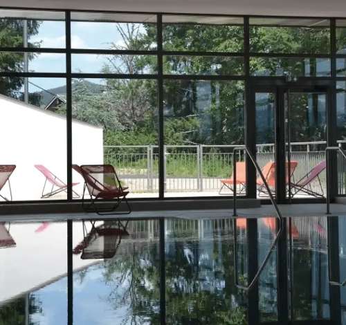 La piscine couverte et chauffée, le sauna et le hammam